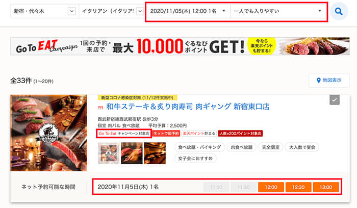 ただ!「ぐるなび」については利用人数が「1人」でも使えるのでGoToイートが使えます!