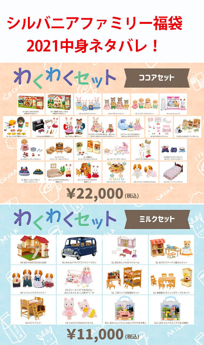 2021年のシルバニアファミリーの福袋は「ミルク11,000円」「ココア22,000円」の2種類!