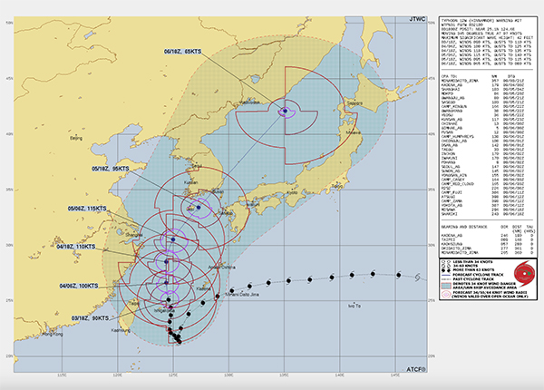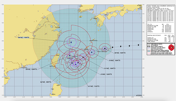 台風11号の米軍(JTWC)台風警報センターの進路図