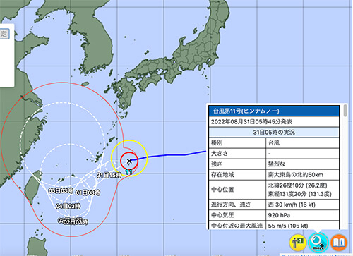 2022年の台風11号(ヒンナムノー)のたまごが日本の南で発生し、正式に台風11号となりました。この台風11号の進路や予報について、また日本への上陸や影響など最新情報が気になりますね。