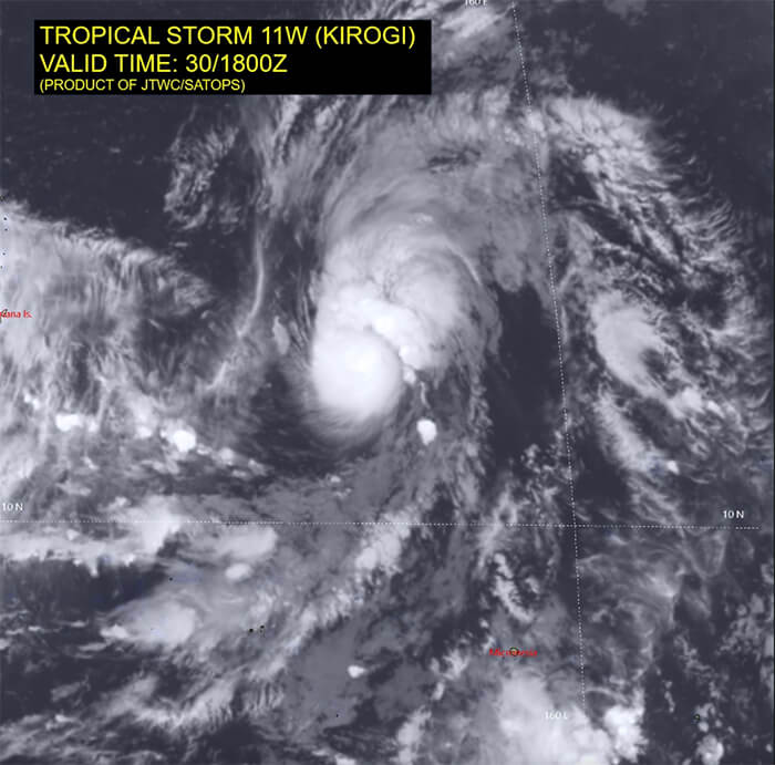 米軍JTWCの衛星図で台風12号を「TS11W "KIROGI"」で捉えています。