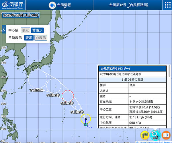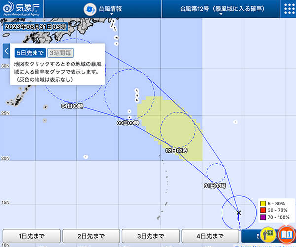 「15日先」までの気象予報・進路予想を見ることができてとても便利です。