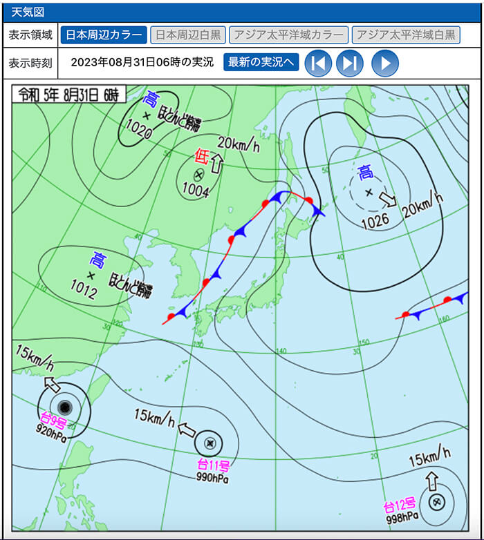 釣り人やサーファーにも人気!台風の時期になると進路なども見れるようになります。