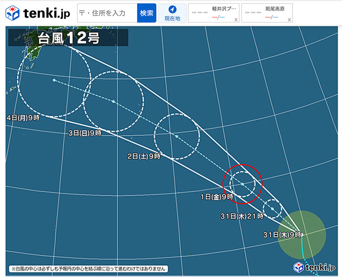 台風12号2023:日本気象協会tenki.jpの進路予報