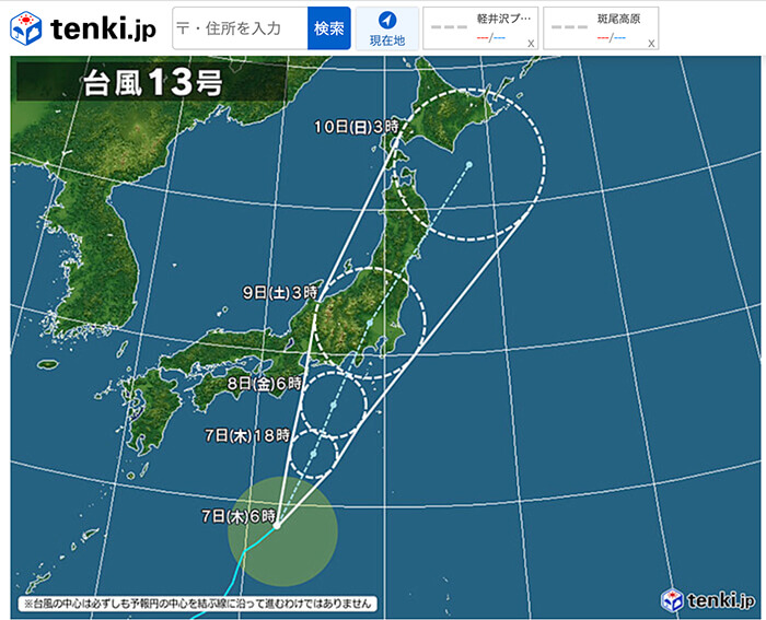 台風13号2023:日本気象協会tenki.jpの進路予報