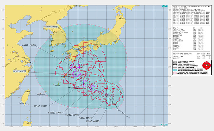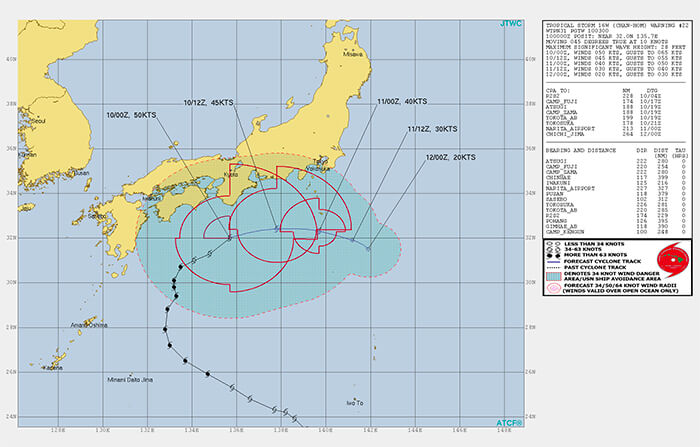 米軍の進路図に記載されている時間は「協定世界時」のため、「+9時間」をして日本時間に置き換えることができます。