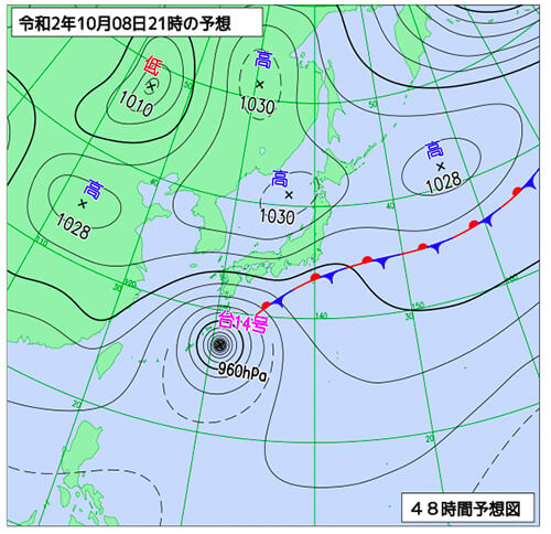 ・10日9時の予報 四国沖(強い台風/970hPa)