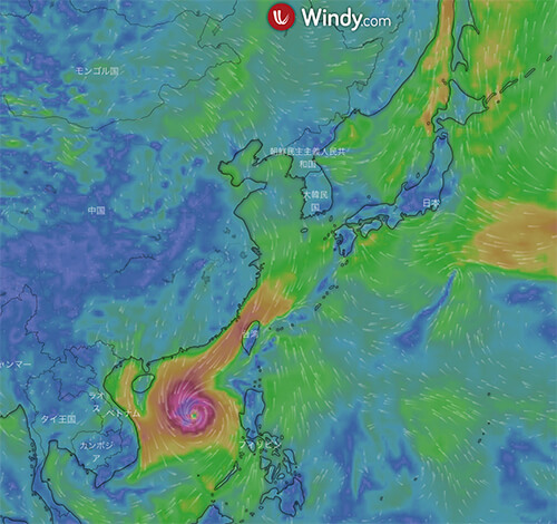 サーファーやダイバー、登山家などにも愛用されるオンライン天気予報「Windy」では、大気の流れを視覚的に確認することができます。
