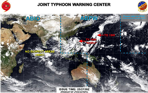 下の図にある赤い矢印「TD19WD(TROPICAL DEPRESSION)」は台風のたまごと言われる熱帯低気圧で、つまり台風17号たまごになります。