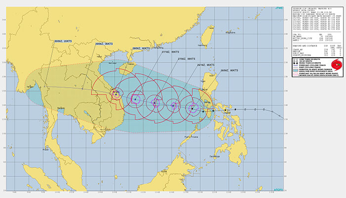 熱帯低気圧の状態でも進路図は発表されます。米軍の進路図は精度が高いと評判ですので、引き続き確認していきます。