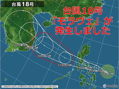 台風18号のたまごは正式に「台風」となりましたが、ラオスやタイ方面に進む予定となっているため、日本への接近の可能性はありません。